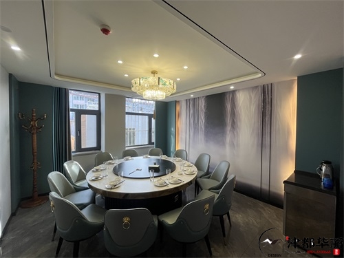 今天分享的是銀川金龍回坊火鍋店裝修設計實景,這家火鍋店裝修設計風格以新中式國潮風為核心,既保留了傳統餐飲空間的雅致底蘊,又通過現代手法注入年輕活力,精準契合了當下火鍋店裝修設計中“文化賦能+體驗升級”的趨勢。從包間區域來看,火鍋店裝修設計的“輕奢質感”被巧妙落地:墻面采用木紋飾面板搭配金色葉片裝飾,既借由木質元素傳遞中式空間的溫潤,又以金屬細節提升宴請場景的精致感;圓形餐桌搭配帶有新中式線條的軟包座椅,淺白與墨綠的配色既呼應了傳統美學的雅致,又通過軟包材質保證了用餐的舒適感;頂部的圓形吊頂+水晶吊燈組合,既以“天圓地方”的傳統意象強化空間儀式感,又用燈光的暖調氛圍消解了商務包間的冷硬。